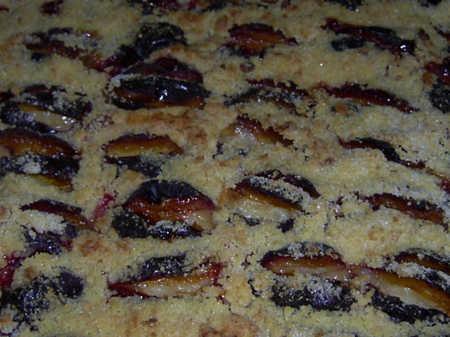 Zutaten für die Streusel vermengen und über die Pflaumen geben. |